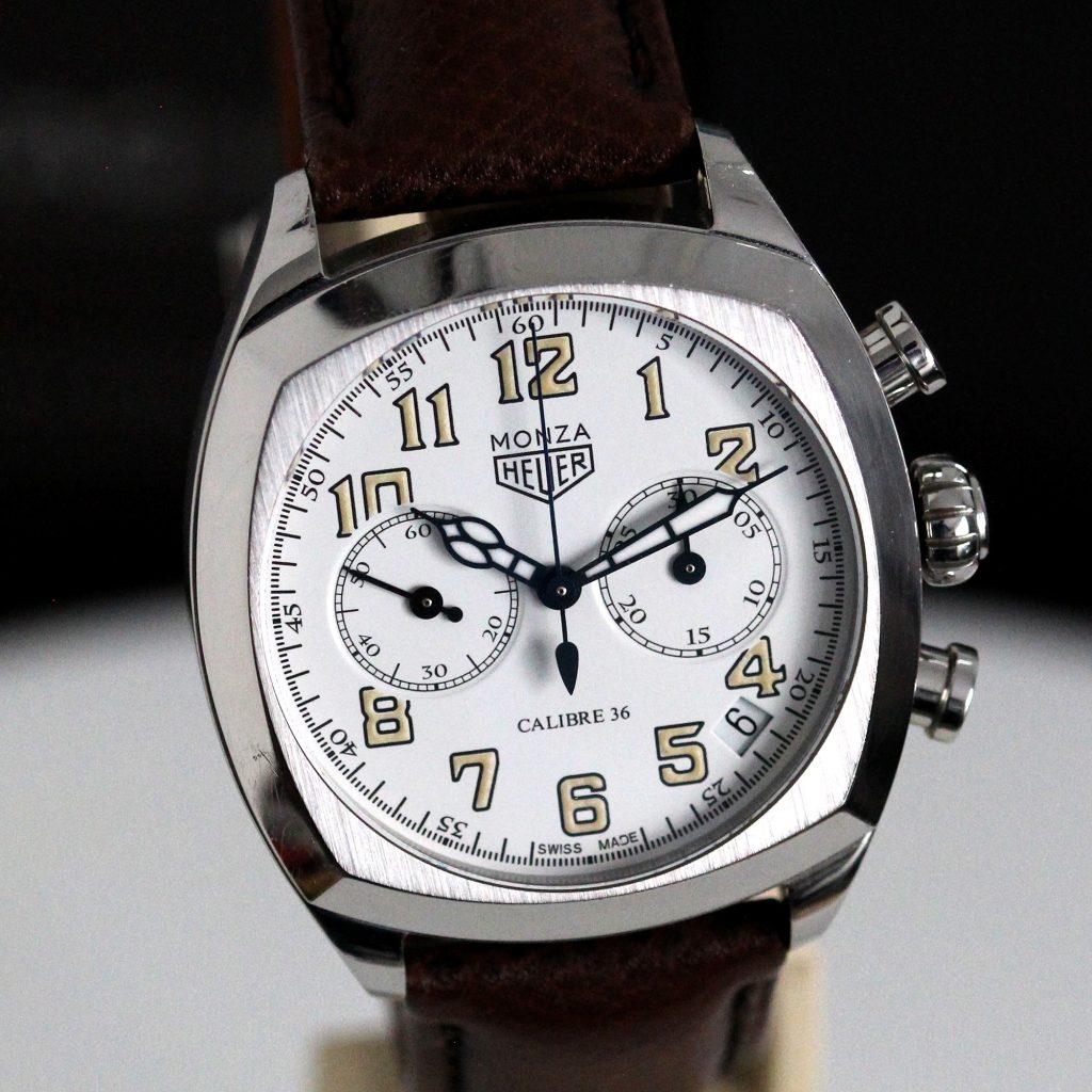 “Of all the re edition Monza’s this is the most surprising. Made to commemorate the time of trip dashboard timers first patented in 1911 (A LIMITED EDITION OF 1911 PIECES SOLD OUT). The attention to detail and quality is very impressive, the movement is of course the wonderful CAL 36 (Zenith El Primero). “