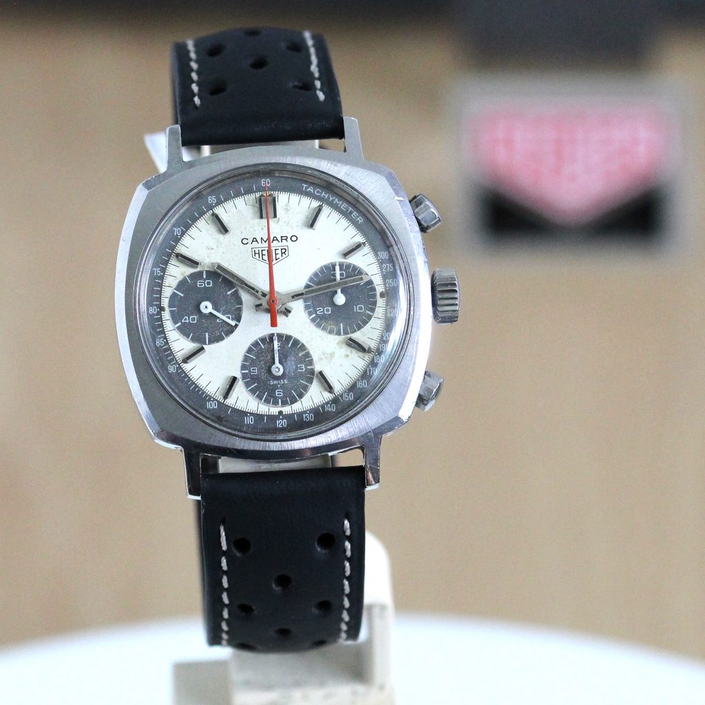 “In the shadow of such giants as the Monaco, Carrera and Autavia, the Heuer Camaro’s innovative spirit remains largely overlooked. However as prices for Heuer’s famed trio continue to soar, the Camaro is witnessing a quiet renaissance as the brand’s best value in vintage.”